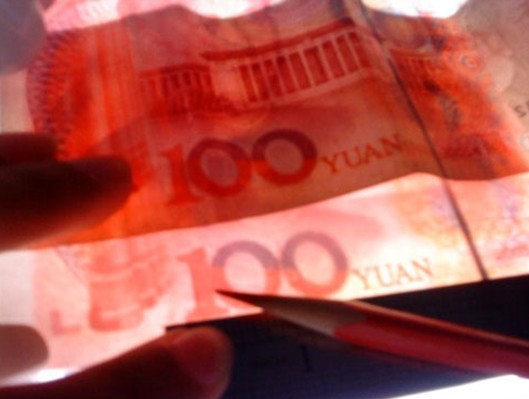 请看 高手 如何 画 出逼真 百元大钞 (文图) 另外拿一张人民币,以便参照。